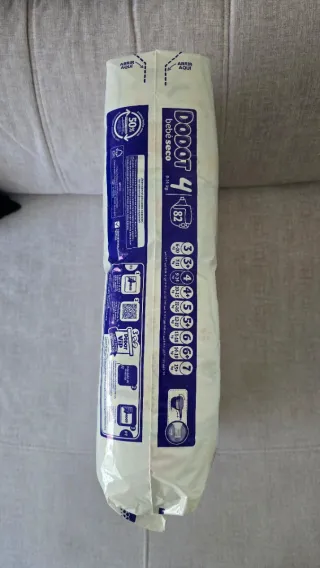 Paquete de pañales Dodot Bebé Seco sin abrir. - Talla 4. - Peso recomendado: 9-14 kg. - Incluye 82 unidades.