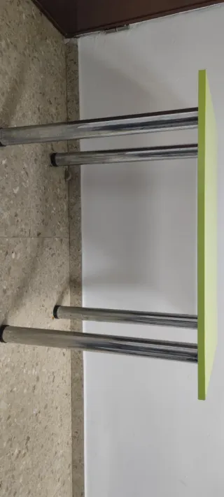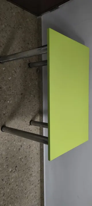 Mesa de cocina con un diseño moderno y un llamativo color verde. - Tablero de madera. - Patas metálicas.