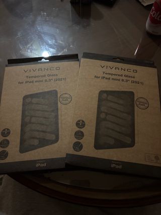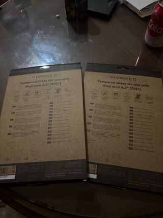 Pack de dos protectores de pantalla de cristal templado para iPad mini de 8.3 pulgadas (modelo 2021). - Cristal templado. - Grosor de 0.32mm. - Resistente a arañazos. - Resistente al agua.