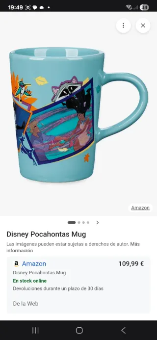 Taza de Pocahontas de Disney, ideal para coleccionistas. Presenta un diseño vibrante y detallado. - Personajes de la película Pocahontas. - Color azul/verde - Material de cerámica.
