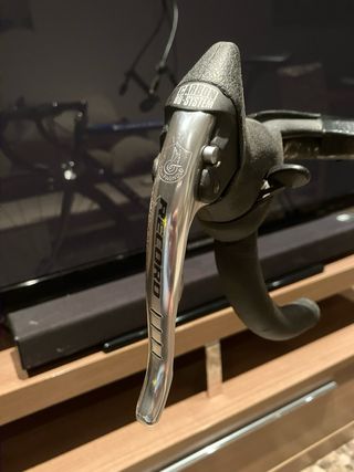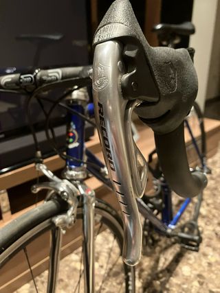 Manetas de cambio y freno Campagnolo Record. - Modelo: Record. - Compatibilidad: 8 velocidades por 2 platos. - Material: Aluminio pulido. -Muy buen estado y funcionamiento, tan solo la marca que aparece en las fotos.