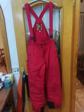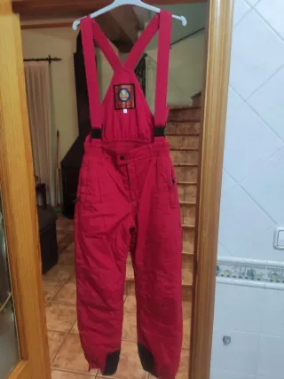 Mono de nieve de color rojo, ideal para actividades al aire libre. - Tirantes ajustables. - Diseño con peto. - Tejido resistente.