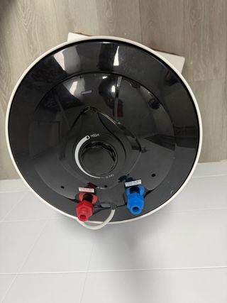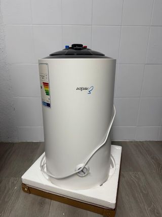 Termo eléctrico de agua, ideal para tu hogar. Su diseño es cilíndrico y de color blanco. - Marca: Emelson - Color: Blanco - Forma: Cilíndrica