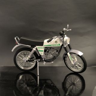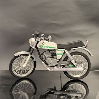 Puch Borrasca, lanzada en 1971 con grandes prestaciones para su epoca, un ciclomotor con caracter pero que finalmente fue eclipsado por el exito de la Puch Minicross. Maqueta Puch Borrasca a escala 1/10, el la que me he esforzado en la miniatura para plasmar la esencia del modelo original con gran detalle. Tambien en este modelo dispone de la luz delantera (opcional), la que podrás encender y apagar de forma mágica con el llavero que se adjunta con el kit de LUZ. Si quieres resaltar la maqueta puedes adquirir tambien la base expositora que esta disponible en dos formatos, redondo de 185mm de diametro o rectangular #Maisto, #Burago,