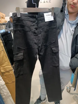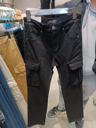 Pantalón de estilo cargo en color negro. - Diseño con múltiples bolsillos. - Cierre de botón y cremallera. Diferentes tallas 34 hasta 52 Por cierre tienda