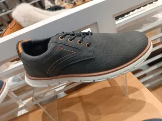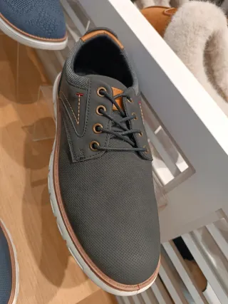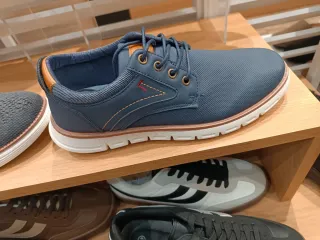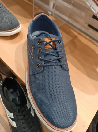 Zapatos de estilo casual con detalles en azul y marrón. - Diseño de cordones. - Material exterior texturizado. - Suela blanca con detalles. - Detalle de costuras decorativas. Diferentes tallas 39 hasta 45 Por cierre tienda