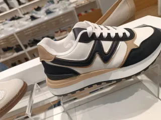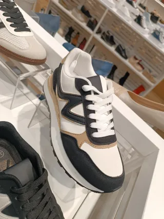 Zapatillas deportivas con un diseño moderno y llamativo. - Combinación de colores blanco, negro y beige. - Cordones blancos. - Suela de goma. Diferentes tallas 35 hasta 41 Por cierre tienda