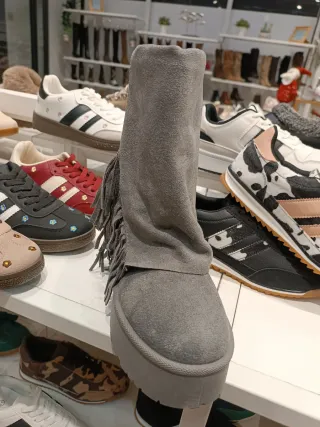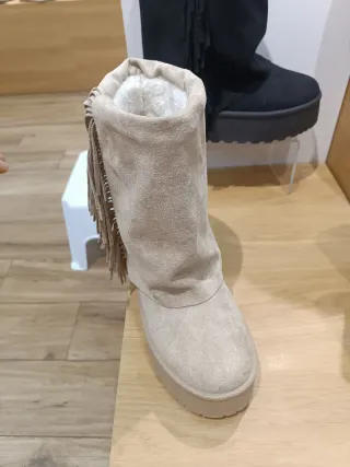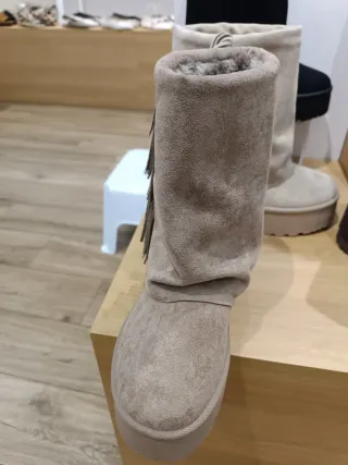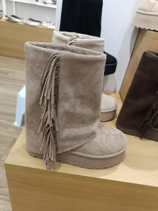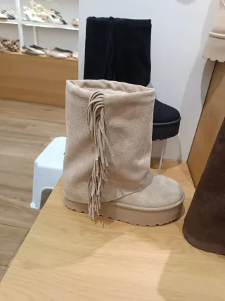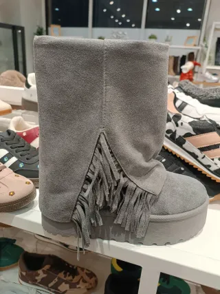 Botas de estilo casual con un diseño único. - Material exterior tipo ante. - Detalle de flecos en la caña. - Suela de plataforma gruesa. Diferentes tallas 35 hasta 41 Por cierre tienda