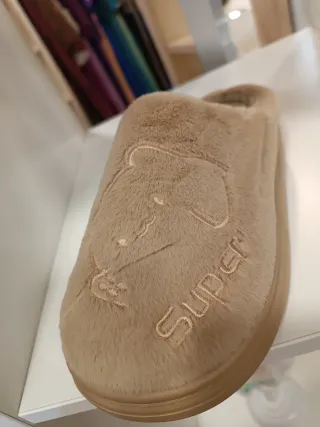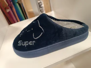 Comodísimas zapatillas de casa con un adorable diseño. - Suaves al tacto. - Dibujo de perro bordado. - Detalle de la palabra Super bordada. Diferentes tallas 35 hasta 41 Por cierre tienda