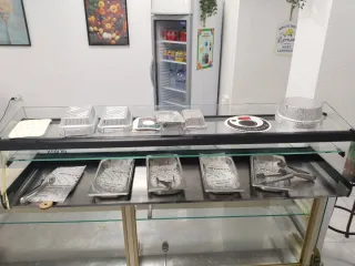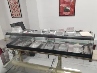 Vitrina refrigerada con doble altura, ideal para exhibir productos. - Estructura de cristal y acero inoxidable. - Puertas correderas para fácil acceso. - Iluminación interior.