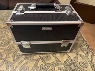Maletín de maquillaje profesional con un diseño elegante y práctico. - Acabado texturizado en negro. - Detalles metálicos plateados. - Asa superior para fácil transporte. - Cierres de seguridad. Ancho:30*18 cm Alto:23 cm 6 cajones extensibles de 16*14cm