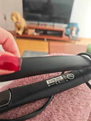 Plancha para el cabello GHD en color negro. se enciende, se calienta y despues de unos minutos se enciende la luz roja 🤷 Para alguien quien sabe reparar o para piezas Sin caja