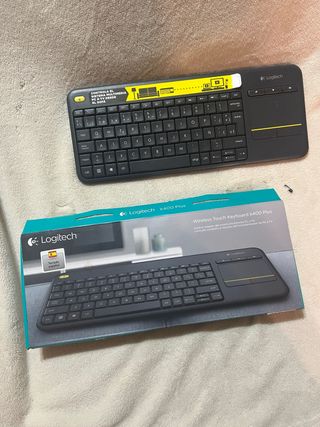 Teclado inalámbrico Logitech K400 Plus con touchpad integrado. Ideal para controlar tu sistema multimedia desde el sofá. - Diseño compacto y ligero. - Teclado español. - Conexión inalámbrica fiable.