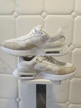 Zapatillas Nike Air Max SYSTM en tonos beige y blanco. Diseño moderno y cómodo. - Parte superior de malla transpirable. - Detalles en ante. - Suela con unidad Air Max visible.