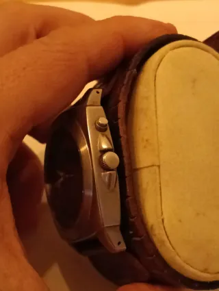 Reloj Lotus con cronógrafo y correa de caucho . - Esfera negra con detalles plateados. - Correa de caucho negra y naranja - Bisel plateado. - Muy bonito .