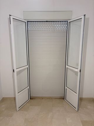 Puerta doble hoja aluminio blanco con persiana