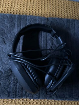 Cascos gaming negros con diadema ajustable y almohadillas cómodas. - Diseño ergonómico. - Cableado incluido. No se a usado
