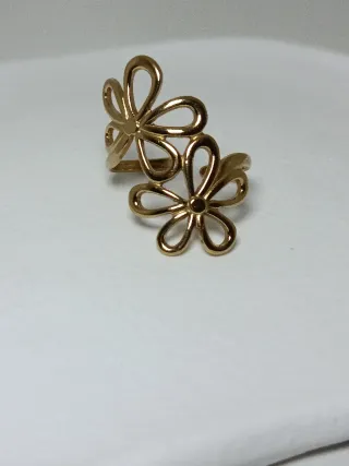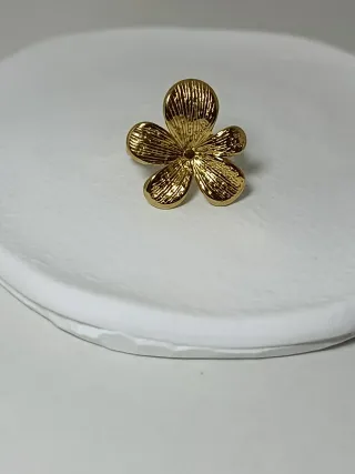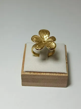 Elegante anillo con diseño de flor en acero inoxidable. - Material: Acero inoxidable. - Acabado: Dorado.