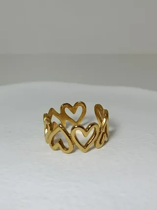 Anillo con diseño de corazones entrelazados. - Fabricado en acero inoxidable. - Estilo moderno y delicado.