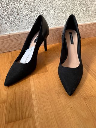 Elegantes zapatos de tacón alto de la marca Stradivarius. - Diseño de punta fina. - Acabado en ante y piel. - Tacón de aguja.