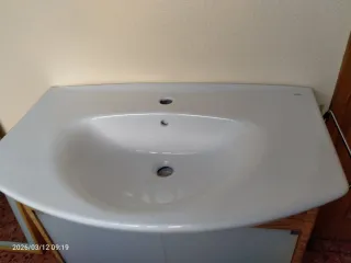 Conjunto de mueble de baño con lavabo y espejo. Lavabo y espejo en buenas condiciones el mueble está viejo...se puede forrar. - Toallero y aplique de luz de regalo - Lavabo de cerámica. Medidas 80*49cm - Mueble con puertas. 75*35 cm ancho. Altura con el lavabo 83cm. - Espejo con marco. 88*62 cm de ancho y 3 cm de canto