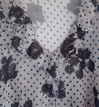 Blusa fina con estampado de flores y lunares. - Diseño con volantes en el escote. - Tejido ligero y vaporoso.