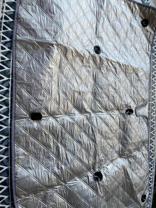 Minicuna en perfecto estado, casi sin uso, con su colchón incluido. - Estructura blanca. - Tejido exterior verde con topitos negros. - Interior blanco. - Ruedas para facilitar el movimiento.