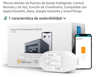 Meross Abridor de Puertas de Garaje Inteligente, Control Remoto y de Voz, Función de Cronómetro, Compatible con Apple HomeKit, Alexa, Google Asistente y SmartThings - Compatible con Apple HomeKit, Alexa, Google Asistente y SmartThings. - Permite control remoto y por voz. - Incluye función de cronómetro. Seminuevo