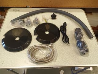 Componentes para ventilador de techo en color blanco. 100cm - Base de montaje negra. - Motor y soporte. - Mando a distancia y receptor. - Manual de instrucciones.