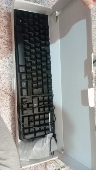 Conjunto de teclado y ratón para ordenador. - Teclado con cable. - Ratón con cable. El precio es el mismo al que lo compre porque no lo he usado nunca