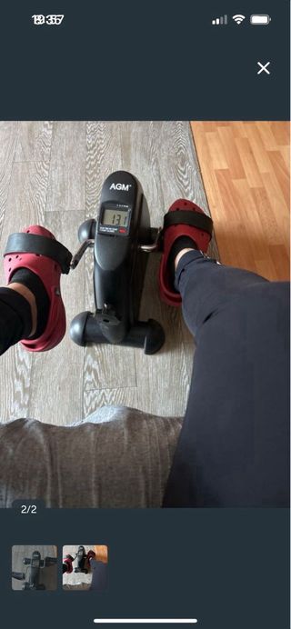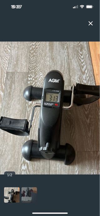 Bicicleta estática compacta de la marca AGM. - Pantalla digital. - Pedales con correas. - Diseño portátil.