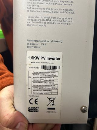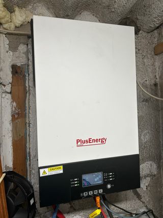 Inversor híbrido de la marca PlusEnergy, diseñado para sistemas de 24V. Este equipo es versátil y puede funcionar tanto conectado a red como de forma autónoma con baterías. - Modelo: WeeSolar. - Voltaje de batería: 24V. - Tipo: Híbrido (On-Grid/Off-Grid). - Incluye pantalla digital y botones de control. Va en su caja original