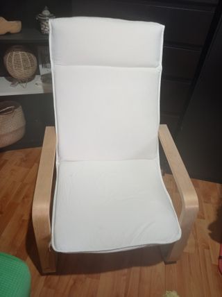 Sillón POÄNG de IKEA con estructura de chapa de abedul y funda en color beige. - Estructura de madera de abedul. - Funda de tela beige.