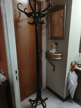 Elegante perchero de pie con un diseño clásico. - Fabricado en madera. - Color negro.
