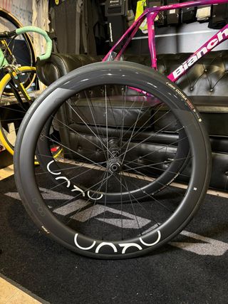 Juego de ruedas Oquo RP45LTD seminuevas. Un montaje ligero (1.390g) con tecnología de bujes Zipp tope de gama. Bujes Zipp Cognition VS2. Equipados con tecnología Axial Clutch V2 para eliminar la fricción al dejar de pedalear y enganche instantáneo. Núcleo Shimano 11-12v. Radios Sapim CX-Ray (24/24). Aros de carbono Oquo 45mm con ancho interno de 21mm. Optimizadas para cubiertas de 25-30mm. Neumáticos Vittoria Corsa N.EXT 700x28c. Hacemos envíos. Financiable hasta en 24 meses.