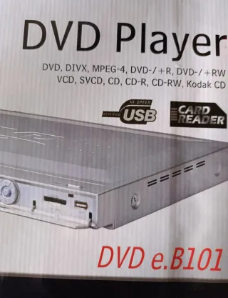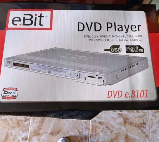 Reproductor de DVD eBit modelo e.B101. - Compatible con DVD, DIVX, MPEG-4, DVD-/+R, DVD-/+RW, VCD, SVCD, CD, CD-R, CD-RW, Kodak CD. - Incluye puerto USB y lector de tarjetas. - Diseño compacto y moderno.