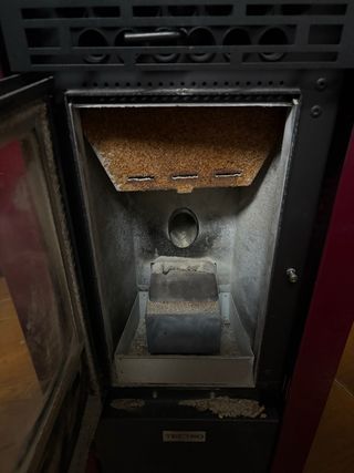 Estufa de pellet negra y roja