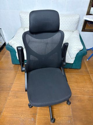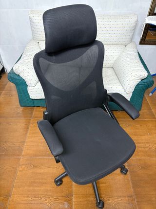 Silla de escritorio ligera y cómoda, diseñada para largas jornadas de trabajo. Su diseño ergonómico se adapta a la espalda. - Respaldo y asiento acolchados. - Reposacabezas ajustable. - Brazos acolchados. - Base con ruedas para fácil movilidad.
