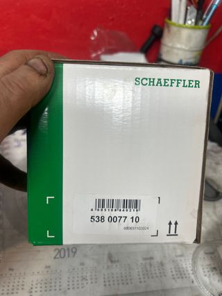 Bomba de agua de la marca Schaeffler, referencia 538 0077 10. - Compatible con vehículos Peugeot. - Código de barras: 400510840219. - Número de lote: 600631102024.