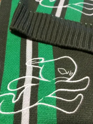 Conjunto de gorro y bufanda a juego con un diseño de rayas verdes y blancas. El gorro tiene un elástico en la parte inferior para un mejor ajuste y ambos artículos presentan un divertido dibujo de un personaje ,bordado. - Diseño de rayas verdes y blancas. - Dibujo de personaje en blanco.