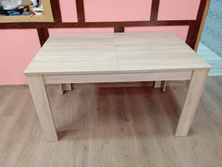 Mesa de comedor con un diseño moderno y elegante, perfecta para cualquier hogar. - Acabado en madera clara. - Patas robustas para mayor estabilidad. Opción de agrandar el tamaño a la hora de más invitados.