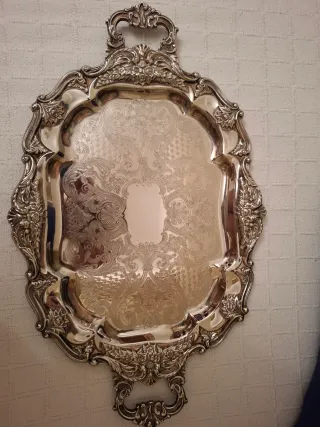 Bandeja de alpaca con grabados