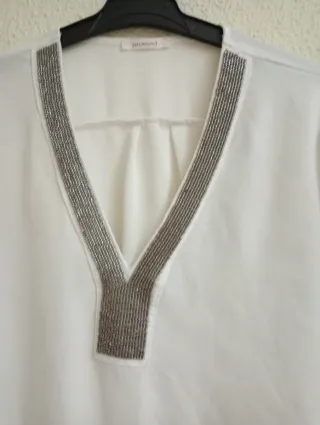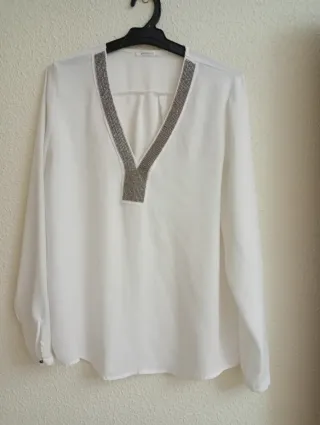 Blusa Promod blanca talla S con pedrería