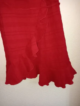 Vestido de tirantes con diseño cruzado y volantes. - Tirantes finos. - Escote en V. - Cinturón a juego. - Detalle de volantes en el bajo y en el lateral.