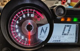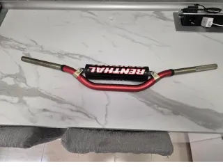 Manillar Renthal 997 original en color rojo. Solo dos salidas y un par de marcas de uso en un lado, se ve en la foto. Con almohadilla protectora. No cambios