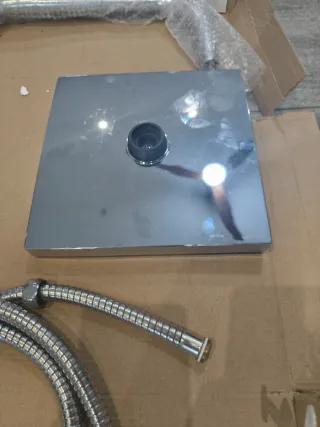 Set de ducha XELA con manguera y accesorios. - Alcachofa de ducha metálica. - Manguera flexible. - Bolsa de tela para guardarlo.