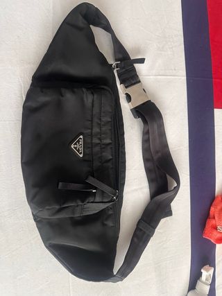 Riñonera Prada original en color negro. - Diseño moderno y funcional. - Correa ajustable con hebilla metálica. - Bolsillo frontal con cremallera. -Regalo marca paginas de prada