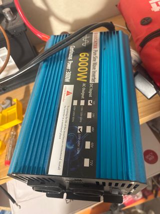 Inversor de onda sinusoidal pura con una potencia continua de 3000W. - Potencia de salida: 6000W - Potencia continua: 3000W - Voltaje de entrada DC: 12V, 24V, 48V, 60V, 72V - Voltaje de salida AC: 110V-120V 60Hz, 220V-240V 50Hz, 220V-240V 60Hz - Se recomienda instalar en un lugar ventilado.