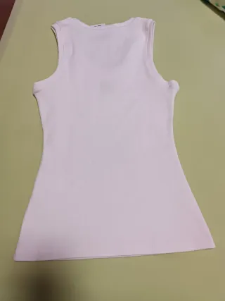 Top blanco de canalé, perfecto para cualquier ocasión. - Tejido elástico. - Diseño sin mangas. - Corte ajustado.