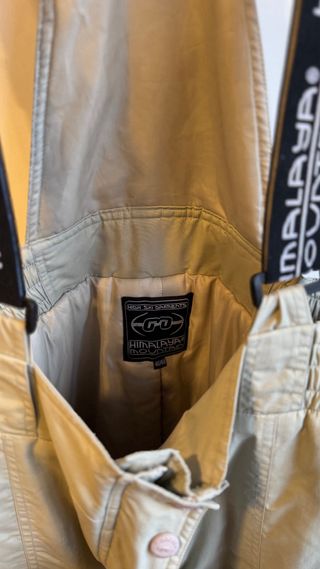 Pantalón de esquí vintage con tirantes, ideal para actividades en la nieve. - Color beige. - Tirantes ajustables. - Cierre frontal con botones y cremallera.